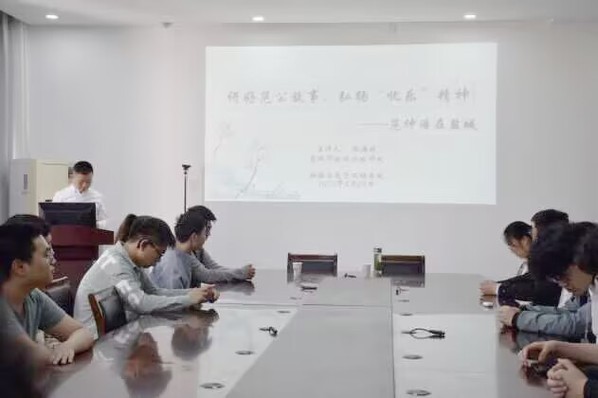 首先,张处长科普了盐城这座城市的发展历史,讲述了盐城与范仲淹之间的深厚渊源,将范公的成功原因进行了总结。张处长结合范仲淹的人生经历向同学们提出几点建议:生在新时代,要珍惜机遇,把握机遇,用好机遇,方能成就大业。讲座最后,张处长表示当代青年要做到不忘初心、牢记使命。“上忠于国,下诚于民”,如范公一般坚持以人民为中心,切实把人民利益高高举过头顶,把对上负责与对下负责有机统一起来。